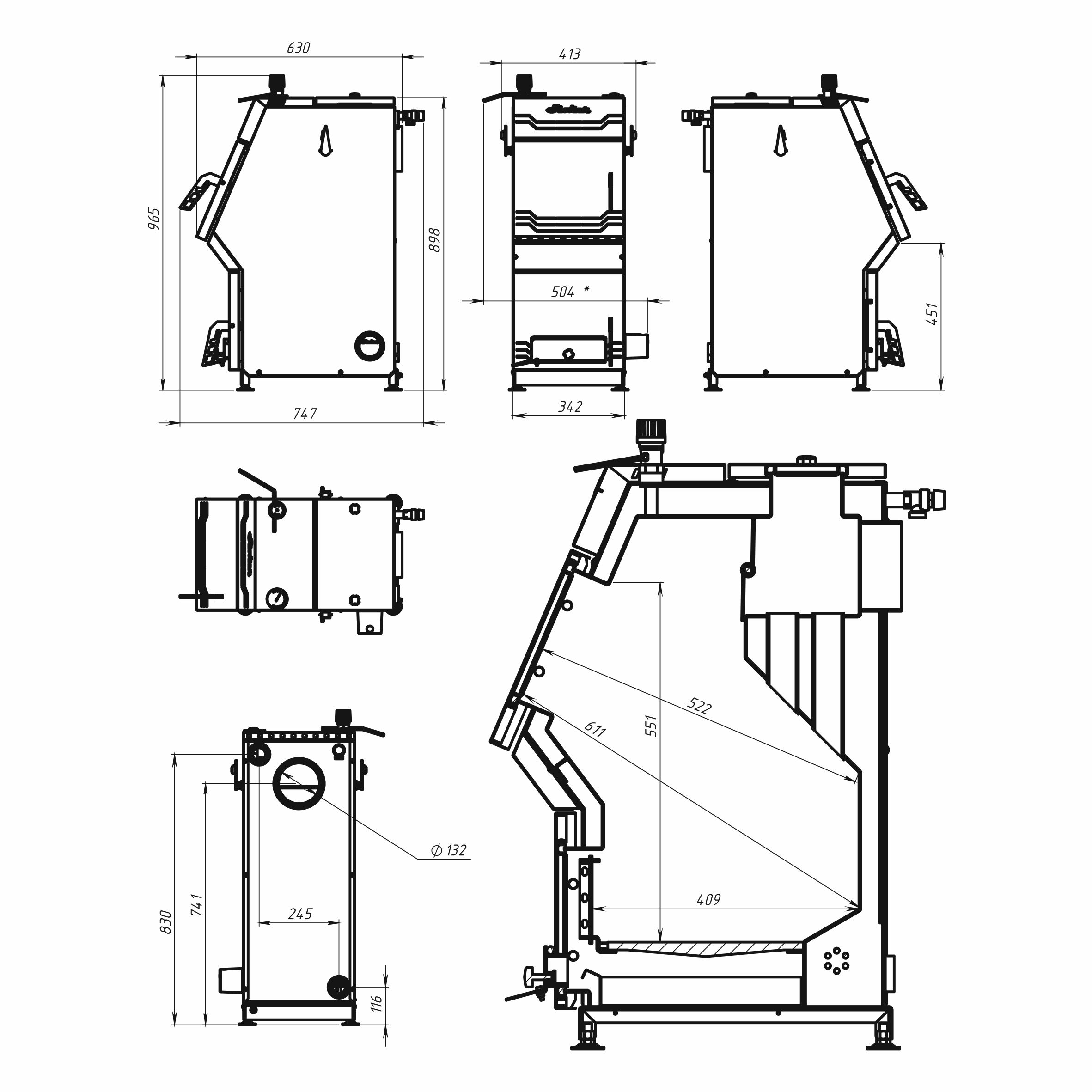 • возможность оборудования котла автоматическим регулятором тяги и блоком управления ТЭН от 3 до 12 кВт