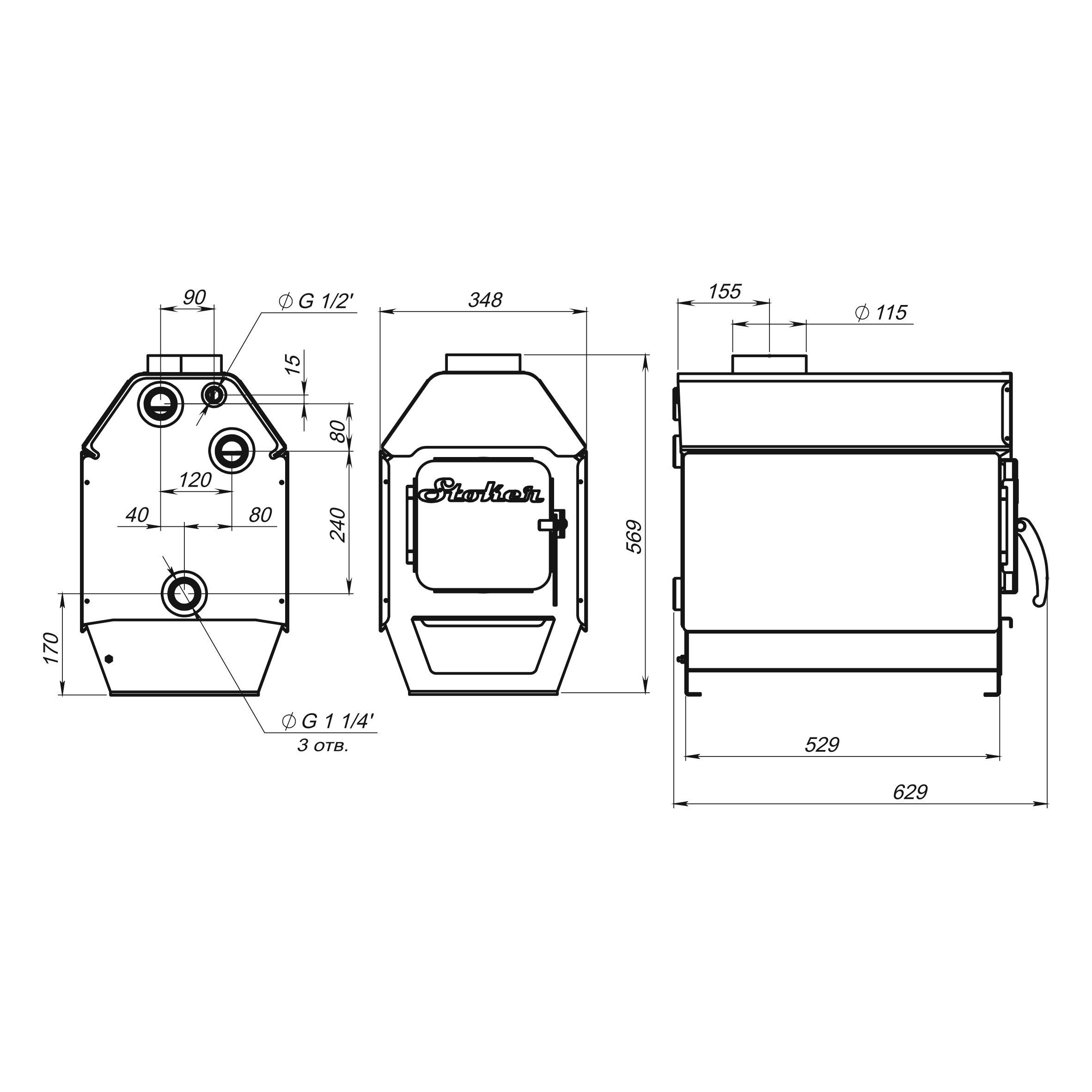• Большой объем водяной рубашки. Водяная рубашка увеличенной емкости (20 л.) быстро и эффективно прогреет водяную систему отопления помещения.