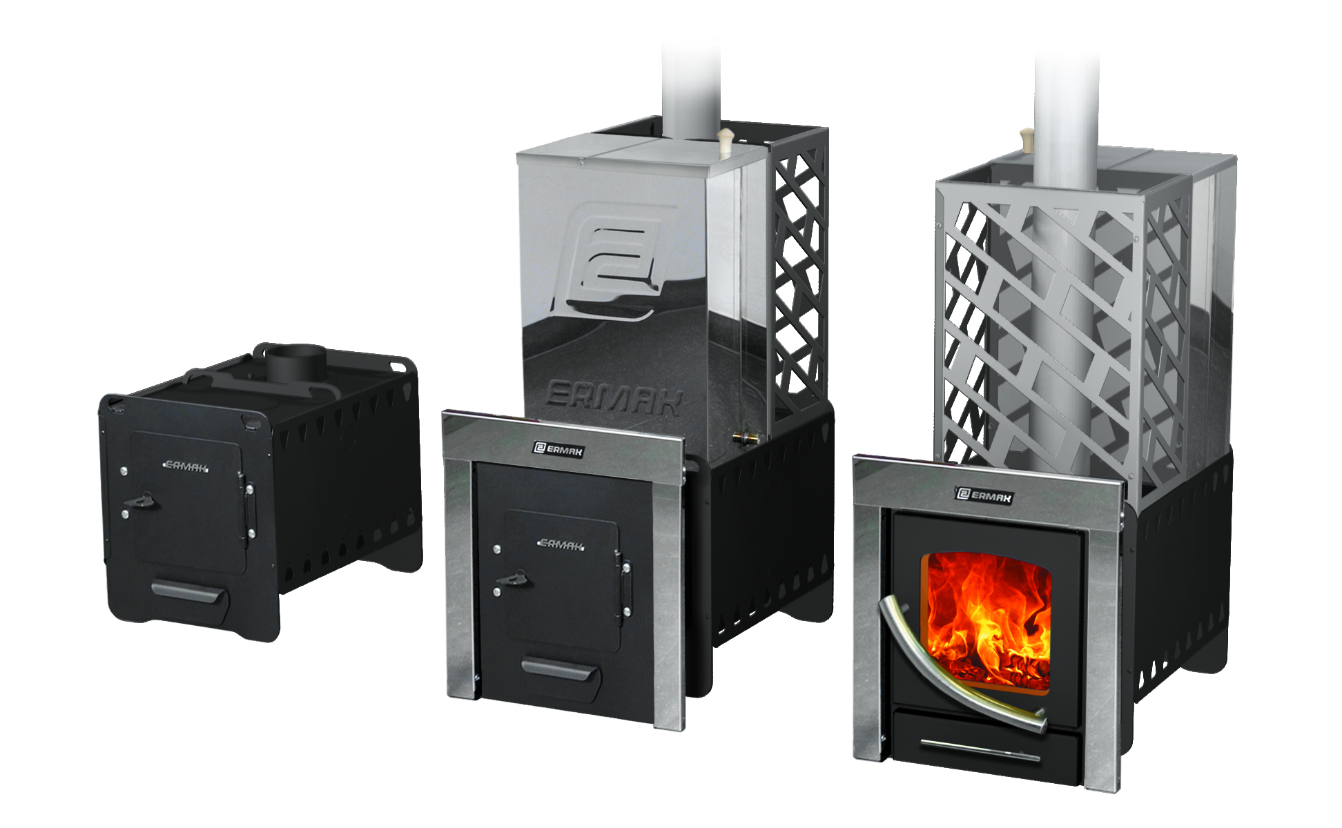 Благодаря большому количеству опций она может быть использована как отопительная или банная печь. Печь «ERMAK CUBE» является платформой, на которую можно установить индивидуальный набор необходимых опций, чтобы создать печь под себя. Все опции возможно устанавливать в любом сочетании, а также менять расположение на печи, за счет возможности перестановки дымохода.