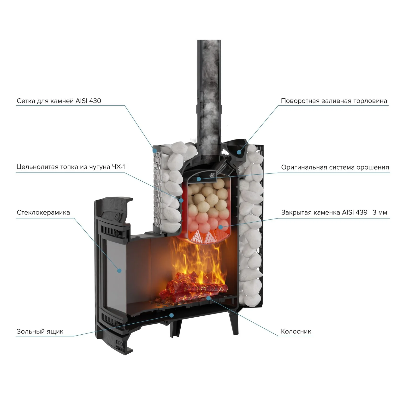 Особенности комплектации - Колосник, зольник, паровая пушка