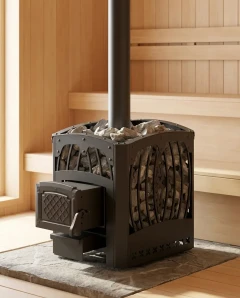 Конструкция печи позволяет достичь нужной температуры уже через 90 минут! Пар, проходящий через камни, создает особенный микроклимат, сохраняет оптимальную влажность и не обжигает. Поэтому именно такую модель предпочитают любители традиционной русской бани.