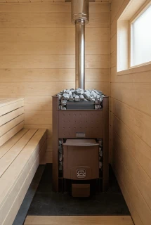 Стремительный нагрев достигается благодаря особой конструкции вертикальной закладки: между камнями и стенками топки существует специальный зазор для конвекции воздуха. Такое решение экранирует жесткое инфракрасное излучение от раскаленных стенок топки, нагревая тем самым большое количество камней, и создает мягкое тепло в парилке.