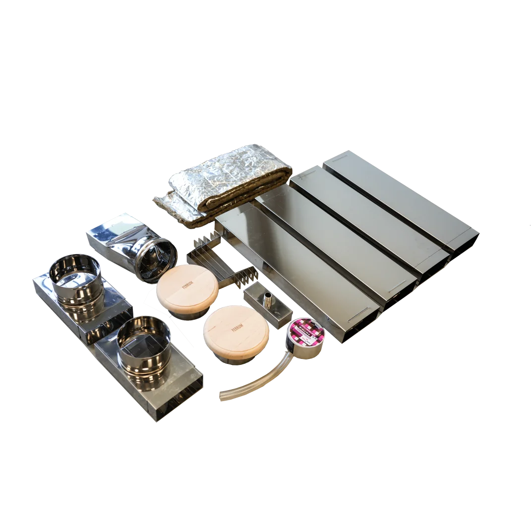Комплект предназначен для сборки системы вентиляции в бане или сауне. Системы вентиляции предназначены для эффективного двухуровнего осуществления и регулировки воздухообмена в парильном помещении, а так же обеспечения сбалансированного микроклимата.