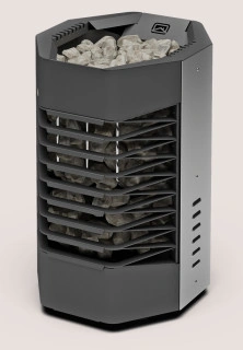 Напольная электрокаменка-сетка. Конструкция - модульная. Все элементы конструкции выполнены из нержавеющей стали. Каждый модуль конструкции может быть легко демонтирована для обслуживания. ТЭНы, расположенные в зоне загрузки, находятся в непосредственном контакте с камнями. Вся энергия, выделяемая ТЭНами идет на нагрев камней и парильного помещения. Нагрев сауны до рекомендуемой температуры парения (60-80°С) происходит за 40-60 мин (в зависимости от первоначальной температуры в помещении и качестве изоляции). Повышение влажности воздуха в парной достигается путем единовременной подачи воды на раскаленные камни.