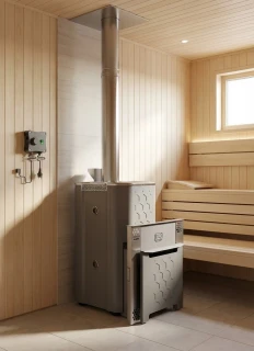 Современный лаконичный дизайн печи позволяет гармонично вписать изделие в любой интерьер бани или сауны.